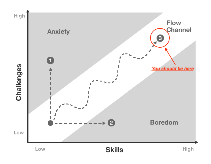 This is the flow state graph. Flow state is when you’re immersed into an activity. You’re fully focused and time passes by unnoticably.